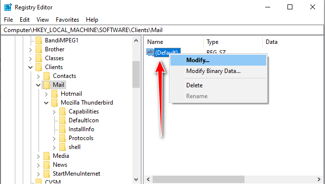2: Right Click the Default Key and select Modify