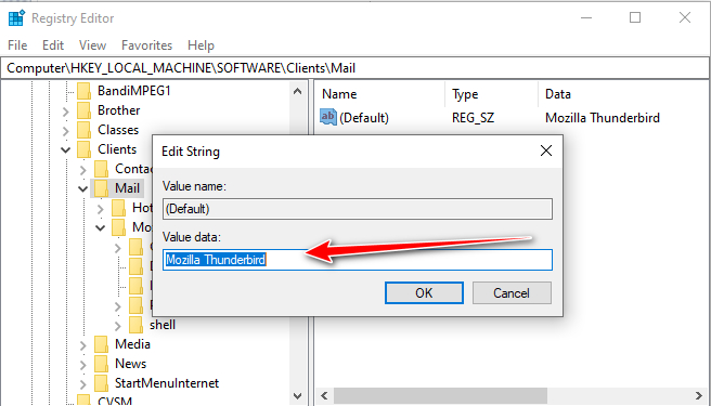 3: Enter the name of your eMail Client. Thunderbird is shown here but use your installed email client.