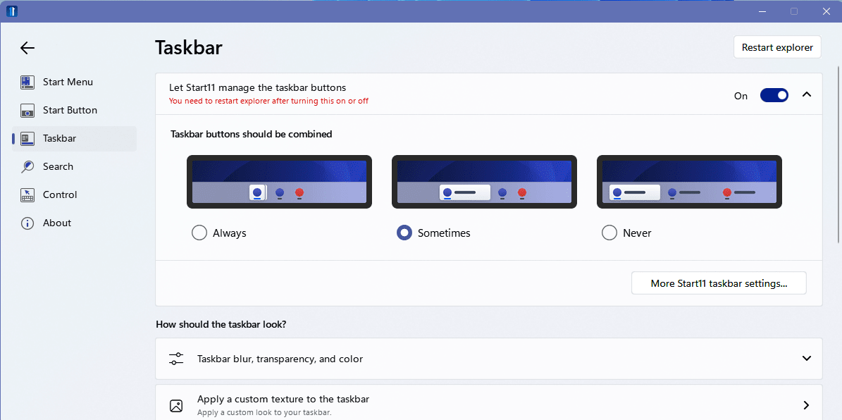 Starting with Windows 11 Microsoft has removed the feature to disable the combining of taskbar buttons. The option named “Combine taskbar buttons’ is not longer available. For many that is a deal breaker. That includes myself. In this post I present a two options to get it back.